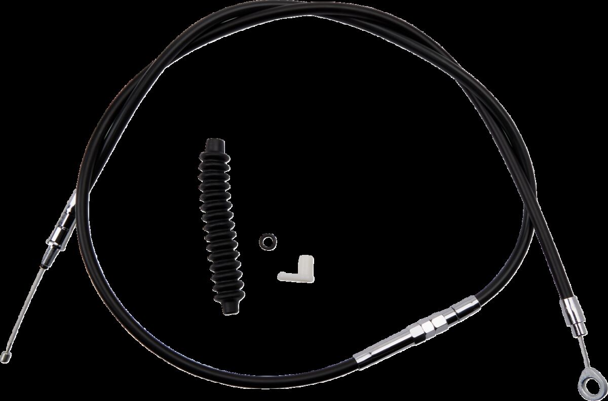 High-Efficiency Black Vinyl Clutch CableCables feature chrome fittings, black vinyl outer casings, tempered-steel inner wire and a nylon inner sleeve for smooth operationHigh-performance cables use the latest technology of longitudinally winding the outer housing lengthwise rather than spirally so cable bends in a more natural arc and eliminates spring and compressionLate-style cables are measured with the adjuster completely collapsed.Adjuster measured from bottom of cable.Clutch Adjuster Location: 64,5 cm (25-7/16")