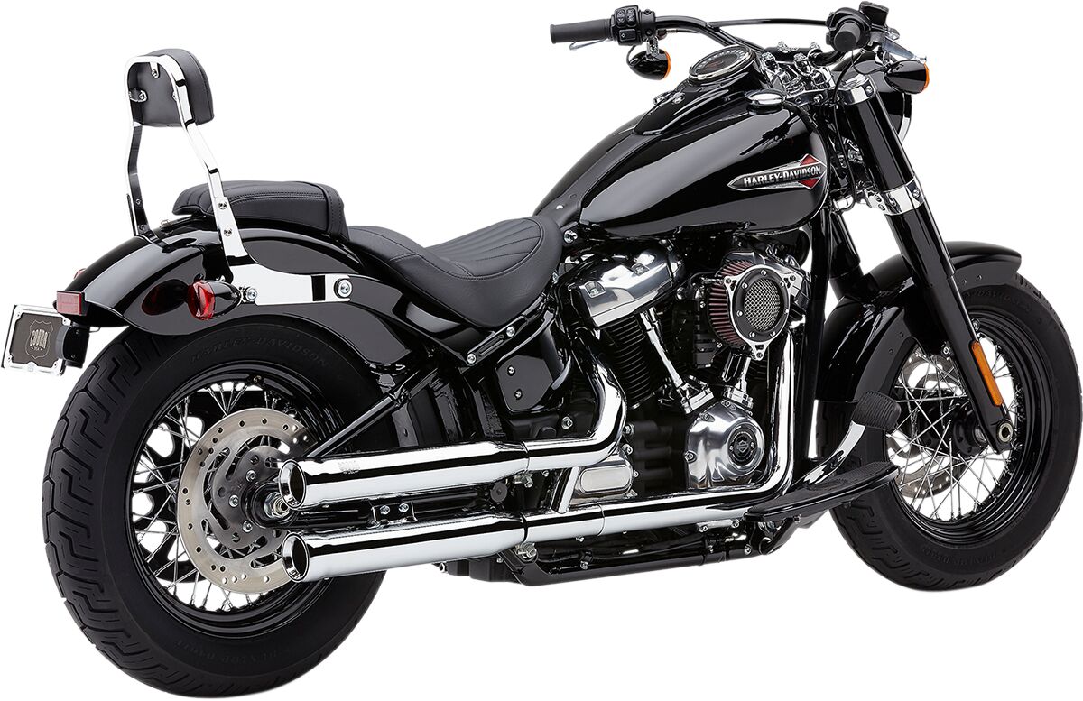 Neighbor Hater Slip-On MufflersIf you're looking to get the most sound out of your new Softail, these are for you Mufflers make use of all of the high-tech features of Cobra's other three-inch slip-on mufflers, including two-inch constant velocity cores for exceptional sound and performance, as well as the bonded e-glass and stainless steel mesh The constant velocity cores are designed specifically for the Milwaukee Eight engine platform, to provide the best sound and performance The 3" muffler body morphs to 3.25" at the rear, and instead of using a billet aluminum tip there is a rolled steel tip and separate inner flared tip