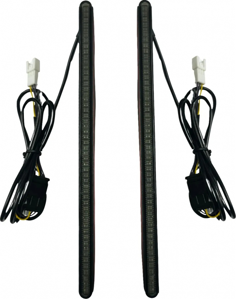 - Single row of dual intensity red LEDs designed for vertical side-mount between the rear fender and saddlebags with double-sided tape