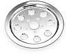 Chrome plated steel. Fully covers the OEM rear wheel pulley on the outside. Gives the pulley that full-chrome appearance.