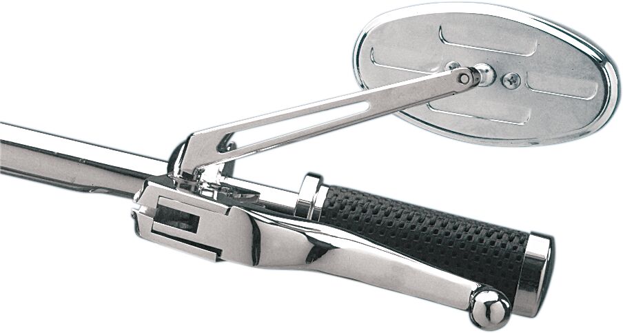 Features flat tinted mirror head with 6 in. stem for drag or custom type barsStem Length: 15 cm (6 inch)
