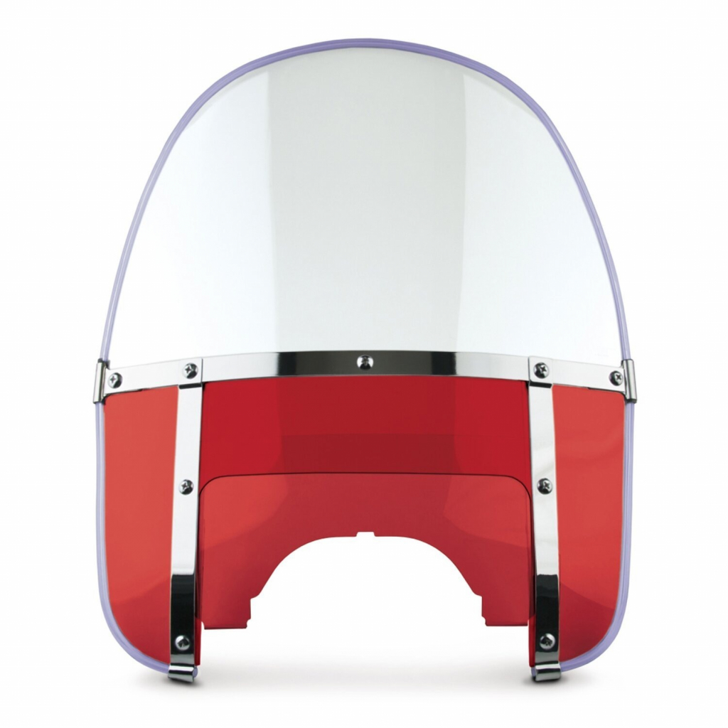 With clear top window and red lower panel & red adjustable window. Top of the line authentic early style 3-piece windshield assembly in a 5-bolt pattern, with beaded edges. Combines classic styling with superior optics, scratch-resistance, durability and should not be mistaken with import products. National Cycle's windshield is manufactured from FRM hard coated clear Lexan® polycarbonate which is the highest quality motorcycle windscreen material available.