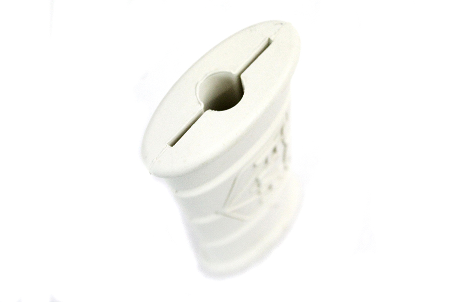White rubber kick starter pedal with an FLH logo has a molded slot which allows it to slide onto the steel pedal as does the original rubber pedal.